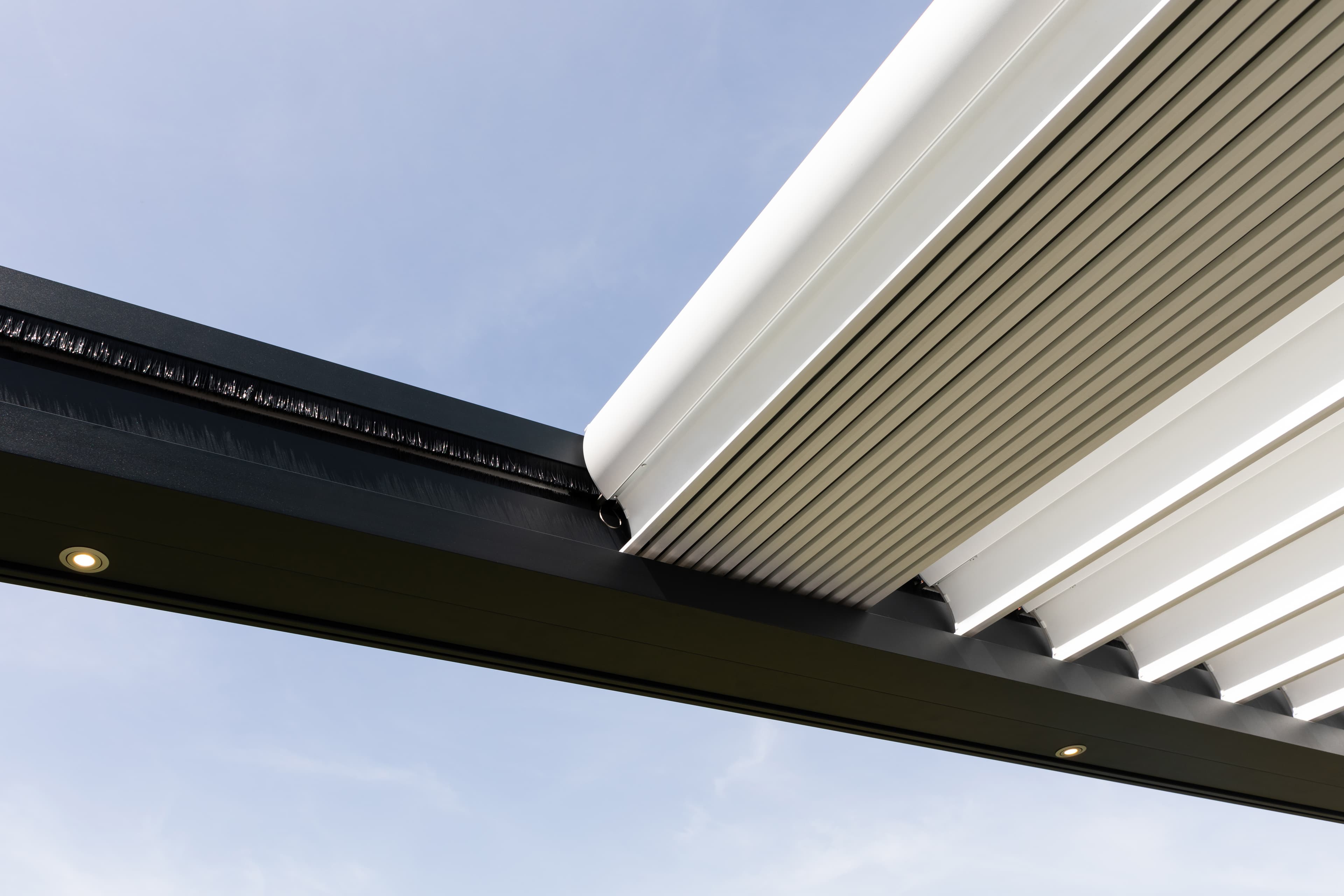 Het dak van de B600 S bestaat uit kantelbare S-lamellen die ook openschuifbaar zijn. De B600 S is daarmee uniek in zijn soort, want als het dak volledig geopend is, blijft slechts een lamellenpakket van 13% van het totale oppervlak over. Brustor is daarmee de enige producent die zo’n compact lamellenpakket aanbiedt.