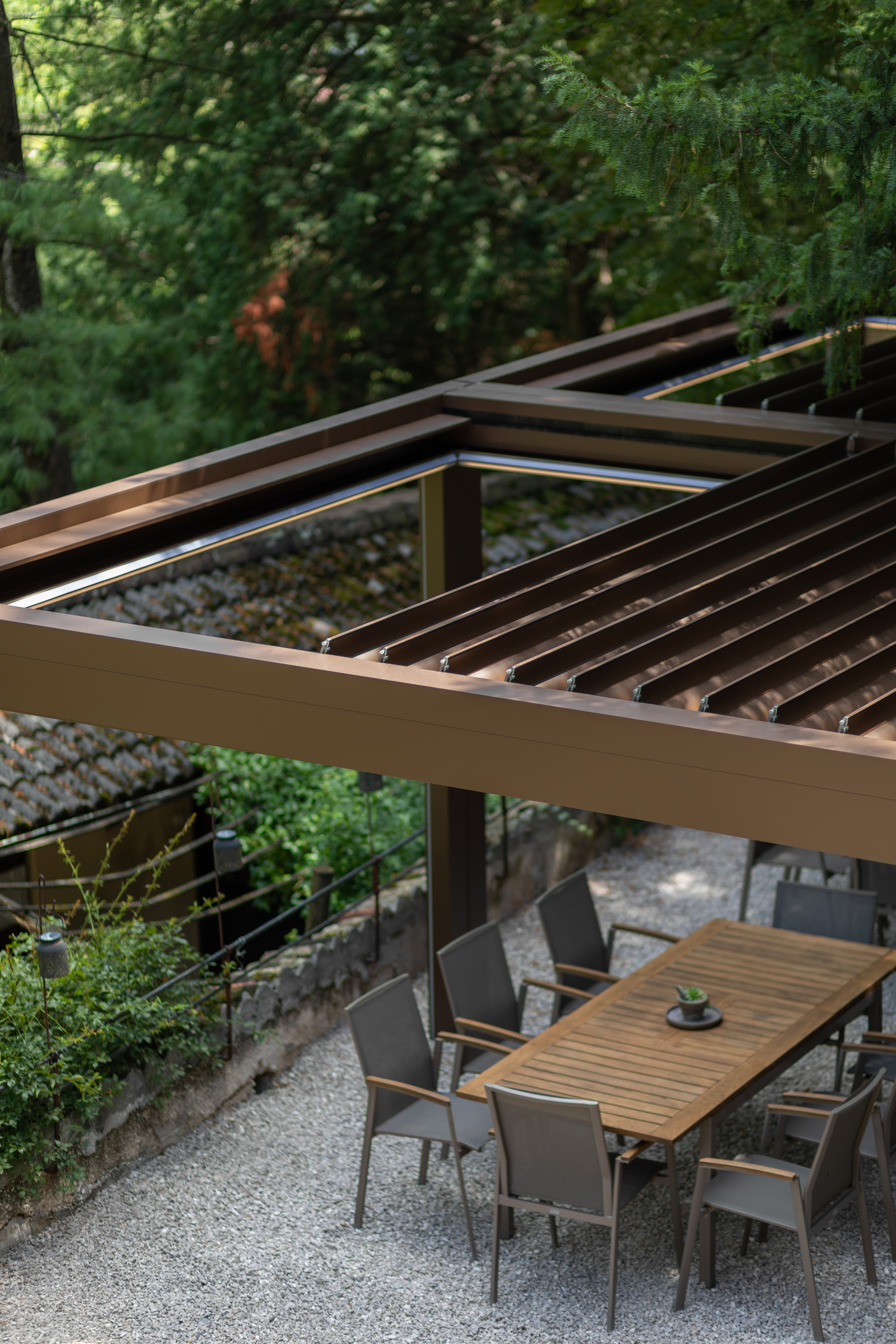 • Terrasoverkapping met openschuifbaar lamellendak